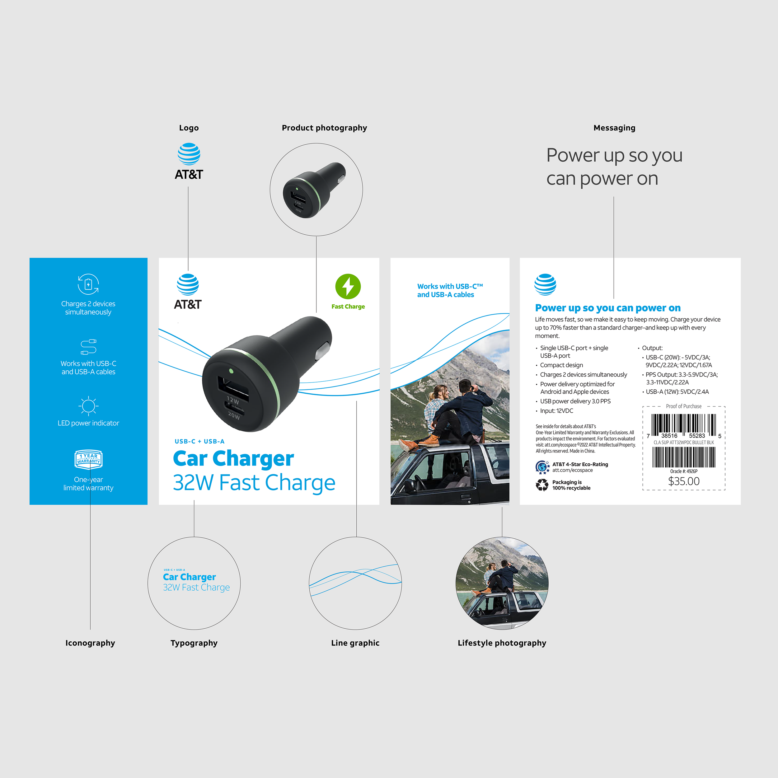 As a result of the packaging for AT&T products being created by various internal and external groups, they lacked a consistent packaging system that reflected their new consumer brand strategy. Our goal was to create a cohesive and flexible packaging system that is capable of working across AT&Tâs entire packaging ecosystem. We created a system that evolves the Blue Embrace of the existing AT&T Consumer Visual ID. We also wanted to the packaging graphic system to celebrate the role our products play in connecting our customers to the world therefore inspiring greater possibilities.